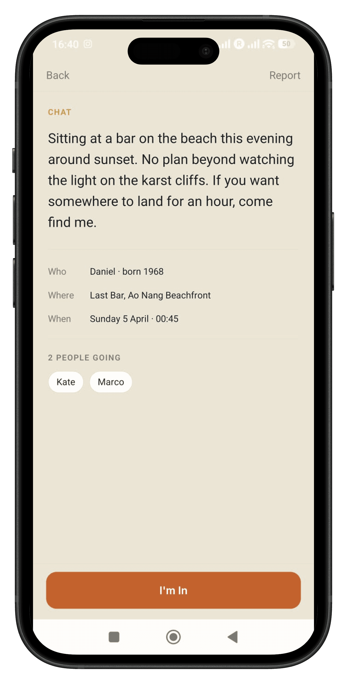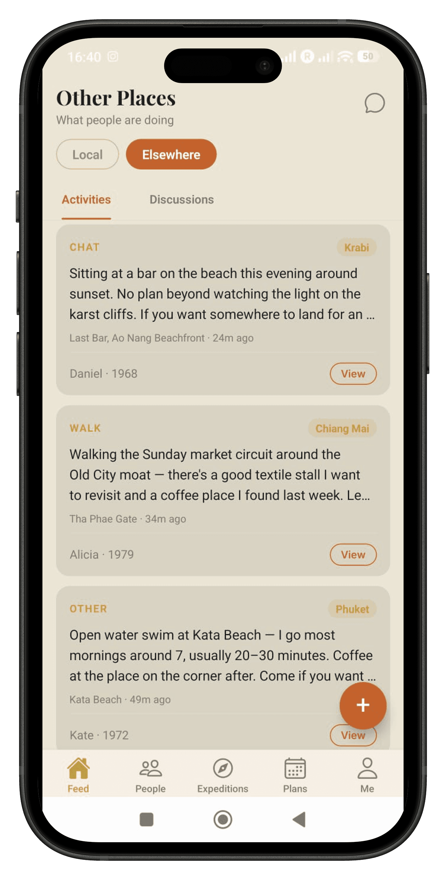A social platform for expats and long-stay nomads — built around one idea: "I'm doing this. You're welcome to join."